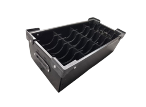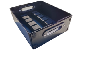 Caja de Coroplast ESD, con separadores y jaladores.