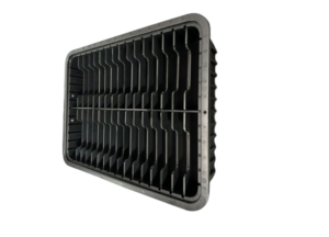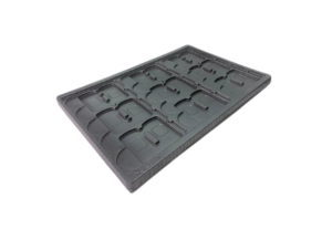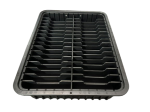 Charola termoformadora de Poliestireno conductivo.